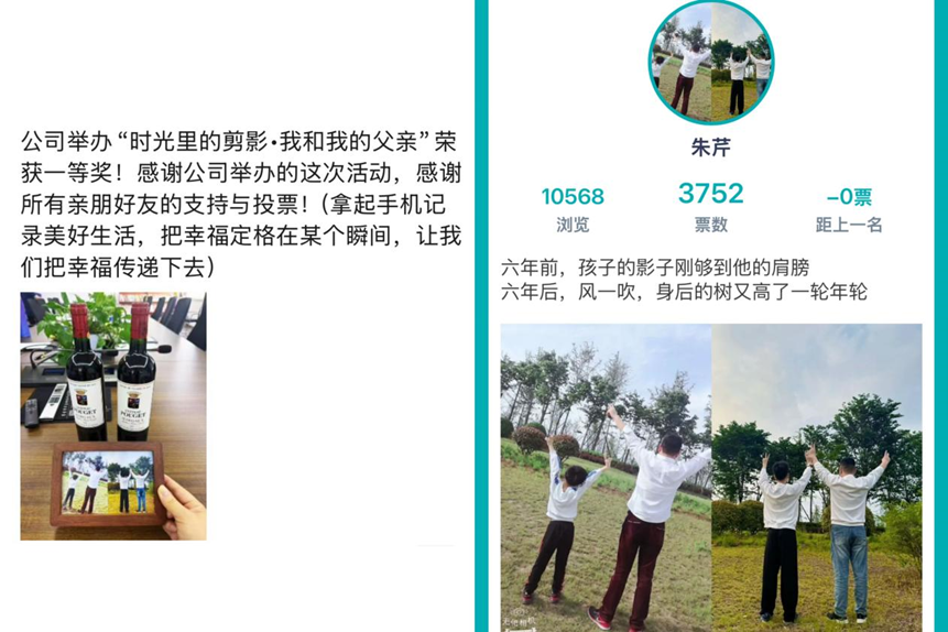 “很感谢公司举办的这次活动,给我一个机会把想对儿子说的话,都写到了照片简介里。”获得三等奖的同事分享,从14年前,她和爱人离开老家山东来到公司工作,期间错过了孩子太多的成长时刻,面对儿子,总有难言的愧疚和心疼。此次投票活动,她和爱人给孩子写了很长一段书信,结尾处写着:“愿每一对父子,都能在岁月里留下更多温暖印记。”